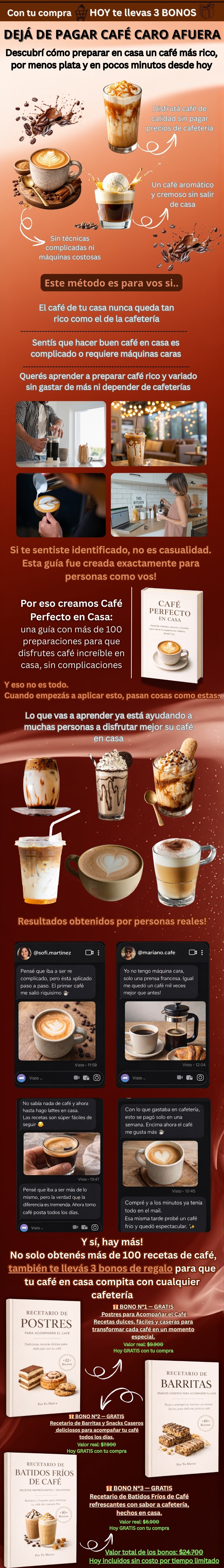 Siempre compraba café afuera y gastaba mucho. Con Café Perfecto en Casa aprendí recetas frías y calientes que preparo en minutos. Ahora disfruto café premium todos los días sin salir de casa.